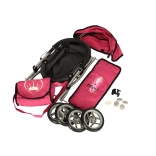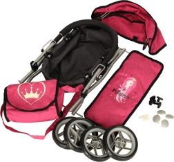 Kolica su opremljena gumenim kotačima koji ne grebu pod, pa su pogodna i za vanjsku i za kućnu upotrebu. U pakiranju se nalazi i ružičasta deka usklađena s kolicima te praktična torba za sve potrebne dodatke!