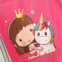 Ružičasti materijal s grafikom djevojčice s jednorogom donosi čaroban izgled koji djeca vole.
