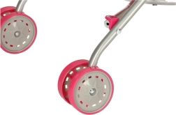 Kolica imaju profilirane ručke, što olakšava upravljanje tijekom vožnje i osigurava udobnu manipulaciju. Funkcionalnost je naglašena sklopivom konstrukcijom, koja omogućuje jednostavno spremanje kolica tijekom putovanja ili kod kuće kada se ne koriste.