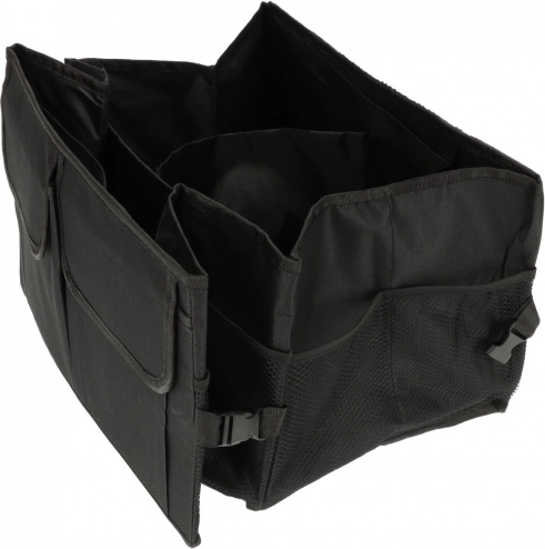 Održavajte red u prtljažniku bez napora. Ovaj prostrani, sklopivi organizator od izdržljivog poliestera nudi tri glavna pretinca, bočne džepove s preklopom i četiri mrežasta džepića za sitnice. Zahvaljujući čvrstoj konstrukciji, praktičnim ručkama i mogućnosti brzog sklapanja u ravan oblik idealan je za kupovinu, alat i autokozmetiku.
