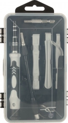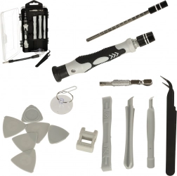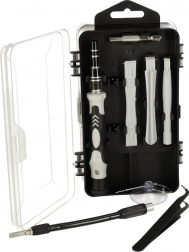 Drška, adapteri, poluge za otvaranje, pincete, usisna čaša, igla za SIM i magnetizer/demagnetizer – sve potrebno za sigurno rastavljanje i popravke.