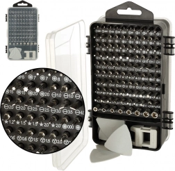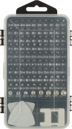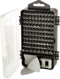 Sastavni dio pakiranja je 96 različitih bitova (Torx, Torx s otvorom, Hex, ravni, Phillips, PZ, Square, trokut, pentalobe, microstix, nasadni i drugi), fleksibilni nastavak za teško dostupna mjesta, alatke za otvaranje, usisna čaša, pincete i magnetizer/demagnetizer za bolje držanje vijaka. Dvostrana futrola s označenim pozicijama osigurava pregledno spremanje i brzo pronalaženje pravog dijela.