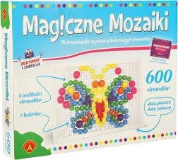 Uđite u svijet stvaranja s Magičnim mozaikama, gdje se mašta pretvara u stvarnost. Na priloženoj ploči s mnogim otvorima možete postavljati obojene elemente različitih veličina i stvarati prekrasne uzorke i slike. Kada dovršite jednu ilustraciju, jednostavno izvadite elemente i počnite stvarati nešto novo.