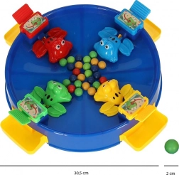 Skačuće žabe su savršena vještinska igra za djecu i odrasle. Po rasporedu kuglica na sredini ploče, pomoću poluga na žabicama pokušajte uhvatiti što više kuglica. Nakon završetka igre prebrojite sakupljene kuglice i pobjeđuje onaj tko ih ima najviše.