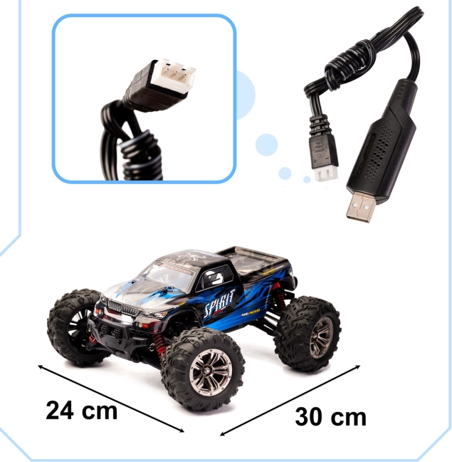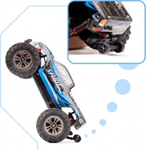 Brz i izdržljiv RC automobil u mjerilu 1:16 s bezčetkastim motorom, maksimalnom brzinom do 52 km/h i upravljanjem na 2,4 GHz. Zahvaljujući velikim off-road gumama i preciznom upravljanju, uživat ćete u vožnji kod kuće i u terenu. Punjiva baterija 7,4 V / 1000 mAh osigurava mnogo zabave, a robusna konstrukcija odolijeva udarcima.
