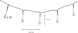 30 LED u obliku kapljica emitira ugodnu toplu svjetlost koja ističe vrtne kutke, terase i balkone te stvara čarobnu večernju scenografiju.