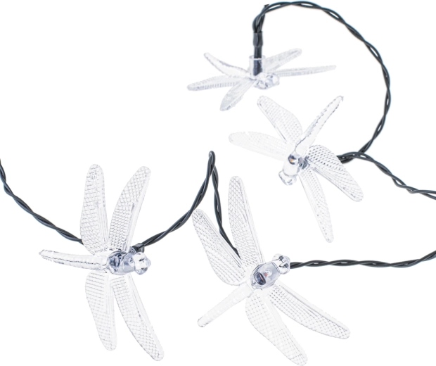 Solarni svjetlosni lanac u obliku nježnih vretenaca pretvara svaki vanjski prostor u ugodno mjesto za odmor. Danju djeluje kao elegantna dekoracija, a nakon sumraka sjaji ugodnim višebojnim svjetlom koje uljepšava grmlje, pergolu i ogradu balkona.