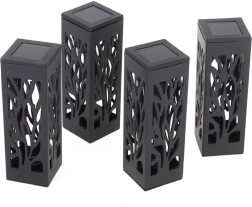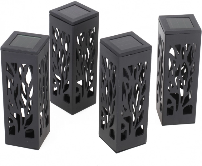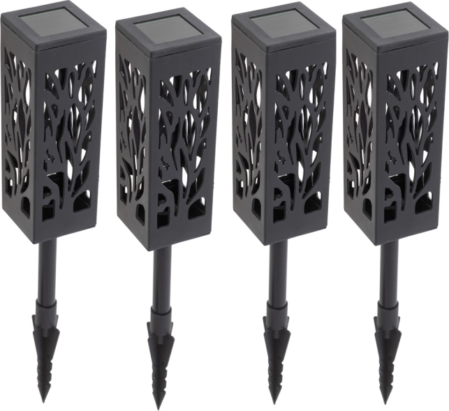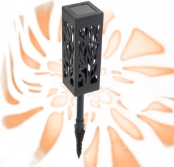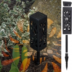 Elegantne solarne lampe za vrt, terasu ili balkon spajaju moderan dizajn i ekološko osvjetljenje. Ažur dekor na tijelu lampe nakon sumraka stvara dojmljive svjetlosne efekte koji naglašavaju staze, gredice i rubove terasa. Instalacija je trenutačna – dovoljno ih je jednostavno zabosti u zemlju.