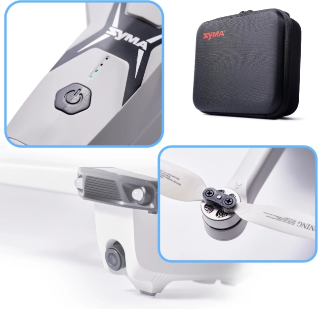 U pakiranju se nalazi daljinski upravljač s držačem za telefon, kabeli za punjenje, rezervni propeleri i upute. Zahvaljujući sklopivoj konstrukciji i praktičnoj torbi dron se lako sprema i prenosi.