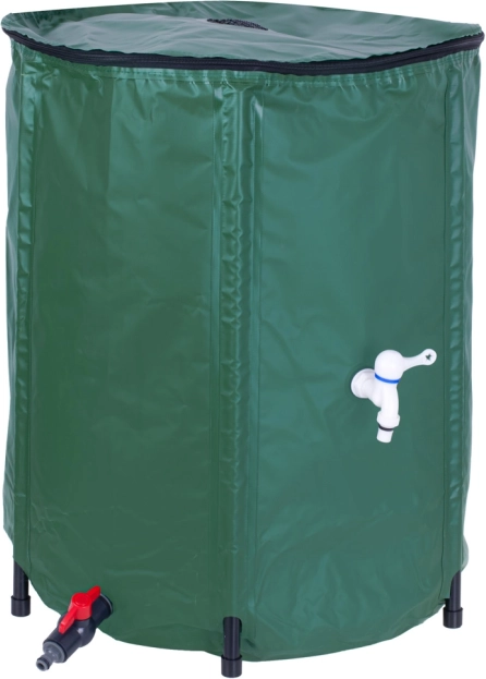 Pametno i ekološki čuvajte dragocjenu kišnicu. Ova sklopiva bačva kapaciteta 200 litara izrađena je od izdržljivog PVC-a, ima pokrivač na patentni zatvarač s mrežicom protiv nečistoća, stabilnu konstrukciju s potpornim nogama i omogućuje tri načina zahvaćanja vode uključujući bočnu slavinu i donji ventil. Idealno za vrt i navodnjavanje, s preljevom protiv prepunjavanja.