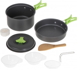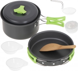 U setu ćete pronaći tavu, lonac i poklopac, izrađene od aluminija za brzo i učinkovito kuhanje. Dvije zdjele za dijeljenje hrane, drvena lopatica za miješanje i žlica za serviranje čine pripremu toplih obroka jednostavnom i praktičnom.