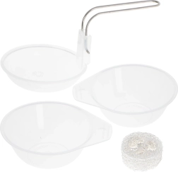 Sadrži tavu, lonac, žlicu, zdjele, drvenu žlicu i spužvicu za čišćenje, što olakšava pripremu i posluživanje jela.