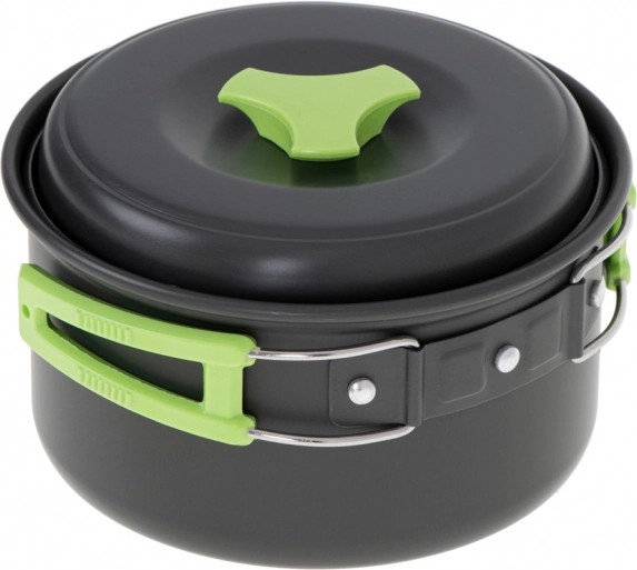 Povećajte udobnost svog kampiranja pomoću turističkog seta posuđa. Zbog lagane i izdržljive aluminijske konstrukcije možete lako zagrijati vodu ili pripremiti odličan obrok u prirodi. Sklopive ručke omogućuju jednostavno rukovanje, a kada završite, jednostavno složite posuđe u praktičnu torbu.