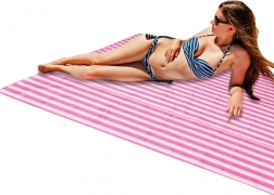 Ova univerzalna deka dimenzija 200x200 cm omogućava prostor za cijelu obitelj ili grupu prijatelja. Izrađena je od mekog tekstilnog materijala za maksimalnu udobnost tijekom ljetnog opuštanja.