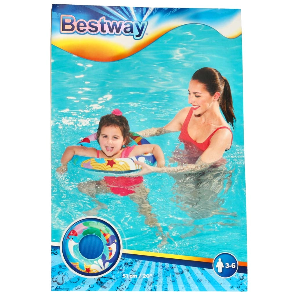 Dječji napuhujući kolut BESTWAY promjera 51 cm s razigranim motivom dupina donosi sigurnu zabavu u vodi. Lagan je, kompaktan i izrađen od izdržljivog materijala, pa je idealan za bazen i jezero. Zahvaljujući kompaktnim dimenzijama lako se nosi na putovanja te djeci od 3 do 6 godina pruža pouzdanu plovnost i udobnu upotrebu.
