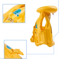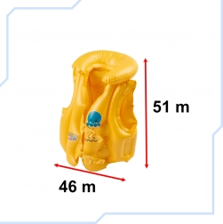 Ovaj napuhljivi prsluk idealan je za djecu od 3 do 6 godina koja uče plivati. Nudi tri komore za napuhavanje, što povećava sigurnost tijekom plivanja – čak i u slučaju oštećenja jedne komore, prsluk ostaje na površini. Jasno žuta boja prsluka osigurava dobru vidljivost u vodi, a podesive plastične kopče omogućuju jednostavno prilagođavanje.