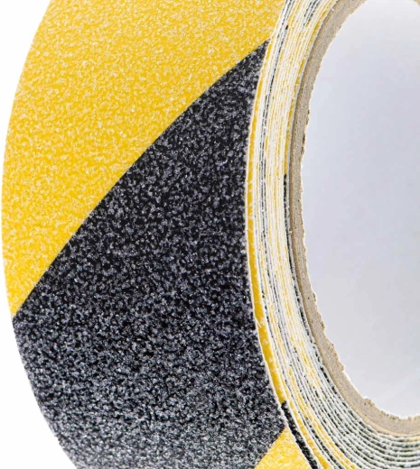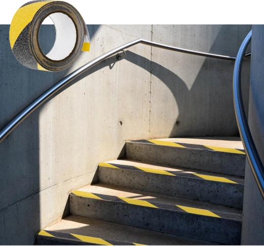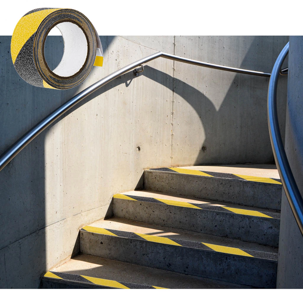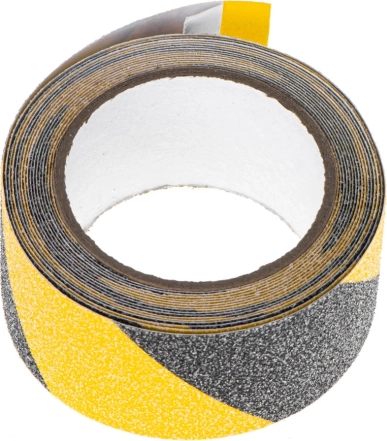 Izdržljiva protuklizna traka u crno‑žutom upozoravajućem izvedbenom dizajnu pomaže spriječiti klizanje na mjestima s povećanim rizikom. Gruba površina s krupnim abrazivnim zrncima osigurava visoko prianjanje obuće i sigurno kretanje čak i u zahtjevnim uvjetima.
