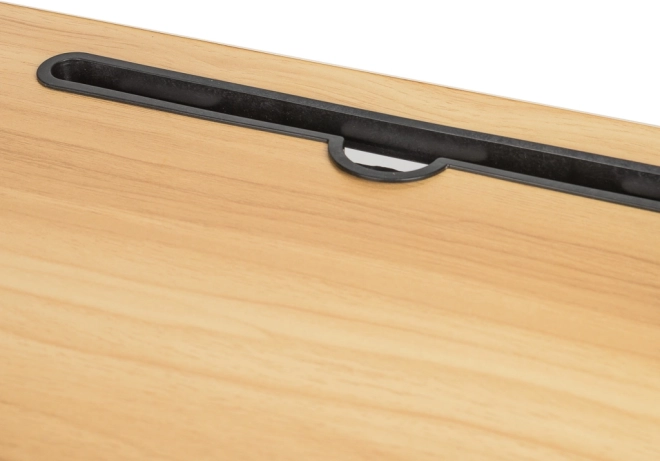 Stol je opremljen otvorima za kabele i držačem za šalicu, što povećava njegovu uporabnu vrijednost.
