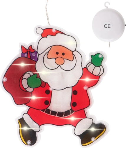 Preslatka viseća dekoracija s motivom Svetog Nikole s darovima uljepšat će svaki interijer. Integrirano LED osvjetljenje stvara ugodnu blagdansku atmosferu, dekoracija je obostrana i lako se pričvršćuje pomoću vakuumske čašice na prozor, vrata ili glatki zid. Baterijsko napajanje bez kabela omogućuje praktično postavljanje bilo gdje.