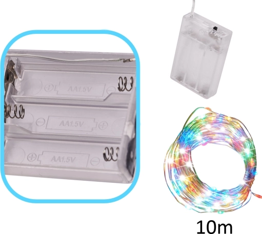 LED žičane lampice 10 m, 100 LED višebojne na baterije. Tanka žica za jednostavno oblikovanje, idealno za božićne dekoracije i DIY projekte u interijeru.