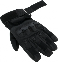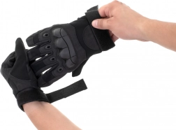 Ove crne taktičke rukavice dizajnirane su za zahtjevne uvjete. Slojevita ojačanja na dlanu poboljšavaju sigurnost hvata i štite najopterećenija mjesta od trošenja ili presijecanja. Tvrđa podstava na gornjoj strani šake štiti zglobove od udaraca, dok podesiva traka na zapešću osigurava stabilno i sigurno pristajanje bez neugodnog klizanja.
