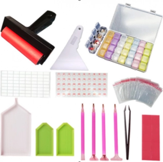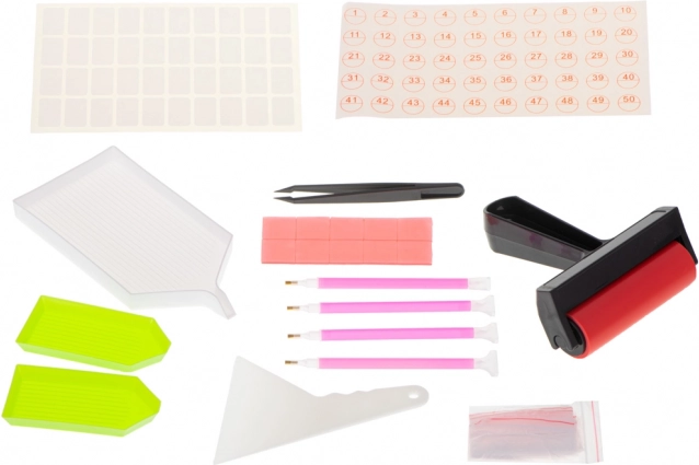 Sadržaj seta: Valjak, 2 standardna pladnja, 1 veliki pladanj s lijevkom, 4 olovke, 1 pinceta, naljepnice, 1 špahtla, separator za kristale, 20 vrećica s patentom. Sve je upakirano u vrećicu s patentnim zatvaračem.