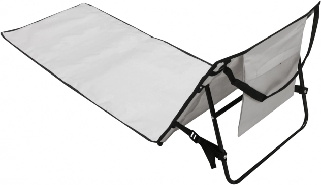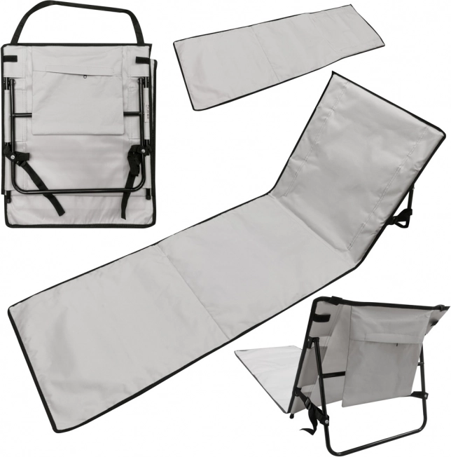 Ovaj ležaljka ima izdržljivu metalnu konstrukciju i vodootporni materijal, zahvaljujući čemu će preživjeti različite sezone. Opremljena je praktičnom torbom pričvršćenom za naslon, gdje možete spremiti telefon ili ključeve. Složena ne zauzima puno prostora i zahvaljujući ručki prijenos je lagan.