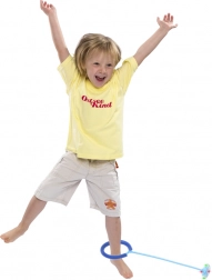 Igra je intuitivna: stavite prsten na nogu, zavrtite i drugom nogom preskakujte užetu s lopticom. Odličan izazov za djecu i odrasle – tko će napraviti više okreta ili zavrtjeti najbrže?