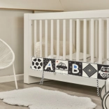 Ova edukativna tekstilna knjižica izvrstan je dodatak dječjoj sobi. Služi ne samo kao knjižica puna kontrastnih uzoraka za vizualnu stimulaciju, već i kao zaštitna obloga za dječji krevetić.