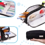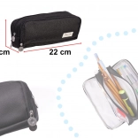 Praktična školska pernica 3 u 1 s trostrukom komorom prima sve potrebne pisaće potrepštine te ujedno služi kao kozmetička torbica ili putni organizator. Izrađena od izdržljivog poliestera, ima kompaktne dimenzije i zatvaranje na patentni zatvarač za sigurno spremanje sitnica.
