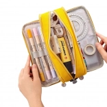 Nema više kaosa u ruksaku. Ova multifunkcionalna pernica s 3 odvojene komore s patentnim zatvaračem prima olovke, kemijske, markere, ravnalo i sitnice. Zahvaljujući unutarnjim džepovima i elastičnim trakama sve će vam biti pri ruci i savršeno posloženo. Odlično služi i kao kozmetička torbica ili putni organizator.