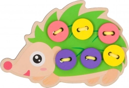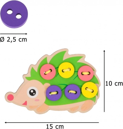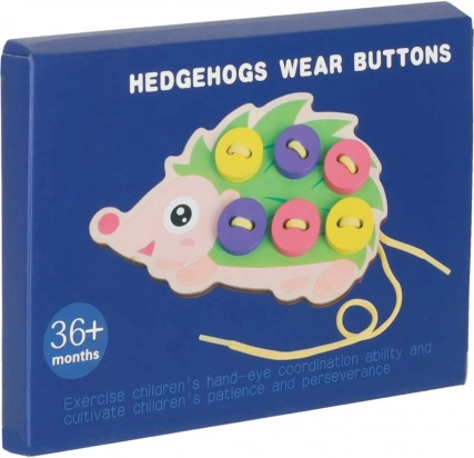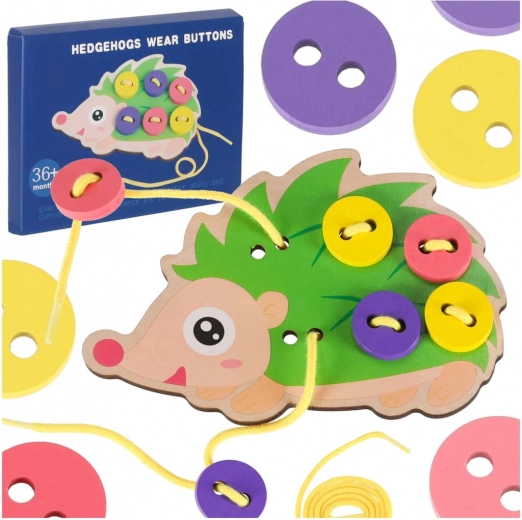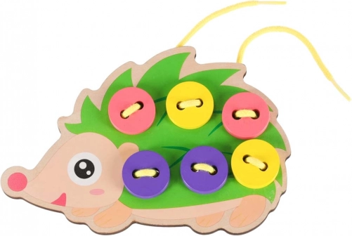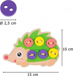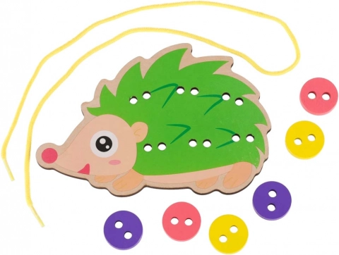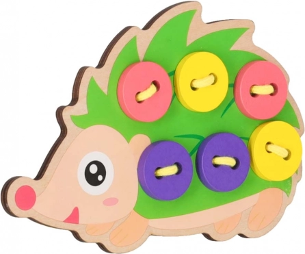 Ovaj ježić za provlačenje idealno je pomagalo za prve korake u vezanju i „šivanju”. Djeca provlače vezicu kroz rupice i pričvršćuju šarene gumbiće na „bodlje” ježića. Vesele, intenzivne boje prirodno potiču igru te uče razlikovati boje i oblike.