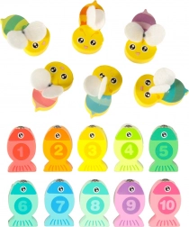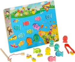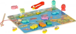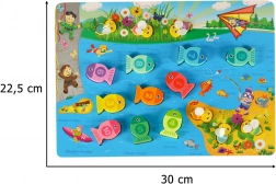 Ovaj kreativni montessori set nudi djeci čak tri načina igre: lovljenje ribica magnetom pomoću štapa, umetanje numeriranih ribica u odgovarajuće otvore i vježbanje fine motorike s pčelicama uz pomoć pincete. Šareni elementi potiču na igru, dok kvalitetna drvena izrada sa zaobljenim rubovima osigurava sigurnost.