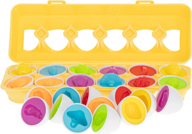 Otkrijte jedinstvenu igru u obliku jaja koja će zasigurno oduševiti male istraživače. Ovaj kreativni set sadrži 12 jaja, od kojih svako skriva drugačiji oblik i boju ispod ljuske. Glavni zadatak je spojiti dvije polovice kako bi se stvorila cjelina, što potiče logičko razmišljanje i kreativnost djece. Igra s jajima razvija ne samo manuelnu spretnost, već i sposobnost prepoznavanja oblika i boja. Zahvaljujući lakoći i kompaktnim dimenzijama, lako ih je ponijeti na put. Savršeno odgovara za ispunjavanje vremena tijekom čekanja ili dugih putovanja.