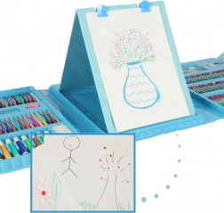 Otkrijte kompletan likovni set u praktičnom plavom koferčiću s ugrađenim stalkom – idealan za djecu i početnike umjetnike. Sadrži širok raspon pomagala: flomastere, bojice, voštane bojice, uljne pastele, akvarelne boje i pribor. Sve je pregledno organizirano u pretincima, lako prenosivo i spremno za stvaranje kod kuće, u školi i na putu.