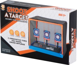Elektronička meta za gađanje izvrsna je igračka za djecu i odrasle koji žele trenirati preciznost i koordinaciju ruka-oko. Nakon pogotka ciljevi se spuštaju, nakon obaranja sva tri automatski se podižu, a na LED zaslonu se pribraja bod. Prikladno za pjenaste strelice i kuglice.