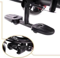 - Sigurnost i kontrola: 5-točkasti pojas, odvojiva sigurnosna prečka, stražnja kočnica, gumene ručke.