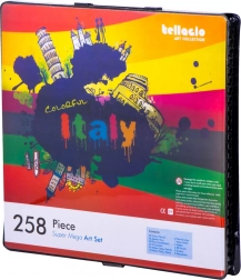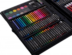 Set sadrži 24 flomastera, 24 bojice, 48 voštanih bojica i 48 uljnih pastela – sve što vam treba za vaš umjetnički projekt.