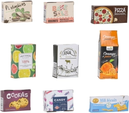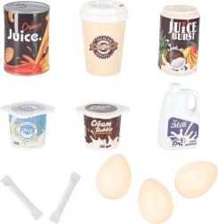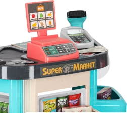 Set uključuje bogat izbor namirnica – voće, povrće, pekarske proizvode i kartonske kutijice koje oponašaju stvarne proizvode. Terminal i skener proizvode autentične zvukove, što igru čini još realističnijom. Cijeli set izrađen je od kvalitetne plastike i kartonskih dodataka, s naglaskom na detalje i sigurnost.
