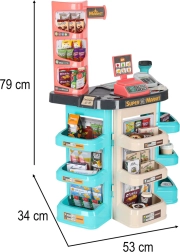 Pripremite se za kupovinu! Ovaj prostrani dječji supermarket s realnim funkcijama oduševit će svakog malog trgovca. Djeca mogu isprobati ulogu prodavača i kupca, skenirati robu, plaćati karticom i gotovinom te voziti kupnju u priloženim kolicima. Igra trgovine prirodno razvija društvene vještine, maštu i uči djecu pravilima svakodnevnog života.