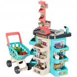 Veliki dječji supermarket s kolicima i bogatim setom od 47 dijelova prenijet će male prodavače u svijet kupovine. U kompletu se nalazi platni terminal i skener barkodova sa zvukovima, mnoštvo namirnica i pakiranja, kovanice i novčanice te vaga. Sjajna igračka za razvoj kreativnosti, komunikacije i fine motorike.
