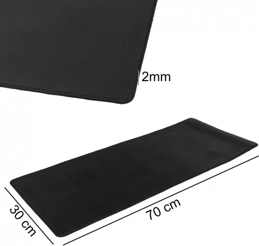 Podloga ima dimenzije 70 cm x 30 cm x 0,2 cm, što omogućuje udobno postavljanje i miša i tipkovnice.