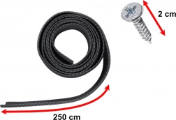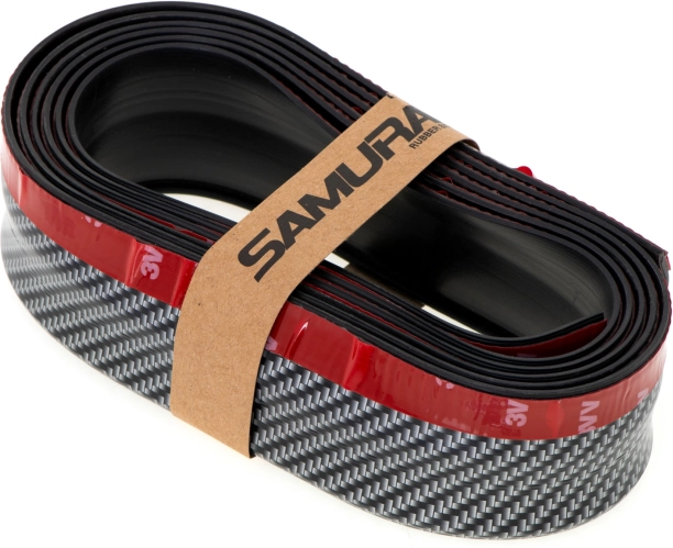 Ova univerzalna lajsna/spojler izrađena je od kvalitetne, elastične gume otporne na vremenske uvjete i manja mehanička opterećenja. Karbonski 3D/5D efekt naglašava linije vozila i vizualno spušta prednji dio. Prikladna za većinu branika – po potrebi se može skratiti.