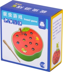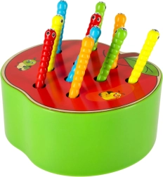 Zabavna drvena igra za djecu u kojoj uz pomoć magnetnog štapića hvataju šarene gusjenice skrivene u jabuci. Potiče finu motoriku, koordinaciju ruka–oko, koncentraciju i strpljenje. Kvalitetna drvena izrada s magnetnim štapićem i 10 šarenih gusjenica idealna je za smisleno igranje nadahnuto principima Montessorija.