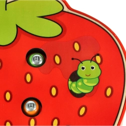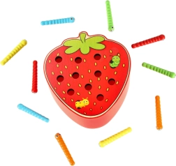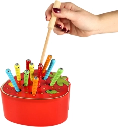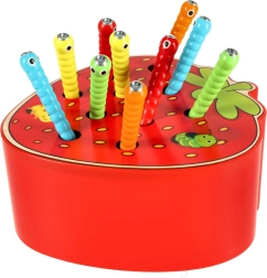 Ova magnetička igra u obliku jagode zabavit će djecu na duge sate. U tijelu jagode skriva se 10 šarenih gusjenica s metalnim završetkom koje dijete pomoću drvene palice s magnetom lovi i izvlači. Za težu varijantu, gusjenice se nakon ulova ponovno precizno vraćaju na svoje mjesto.