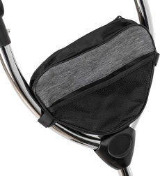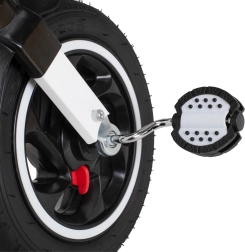 Veliki bezzračni kotači s izvrsnim prianjanjem otporni su na probušenje i ne zahtijevaju napuhavanje. Za sigurnost se brinu stražnje parkirne kočnice, pojas u 2 točke, zaštitna prečka i protuklizne pedale. Tu su i zvonce, praktični džep na patent i krov s mrežicom za nadzor nad djetetom.