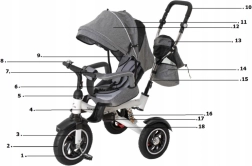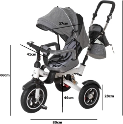 Ova multifunkcionalna trokolica prilagođava se tempu rasta djeteta – od načina s roditeljskim upravljanjem do samostalne vožnje. Slobodni hod na prednjem kotaču omogućuje djetetu ugodno okretanje pedala dok roditelj određuje smjer pomoću visinski podesive ručke s izdržljivim kožnim presvlakom.