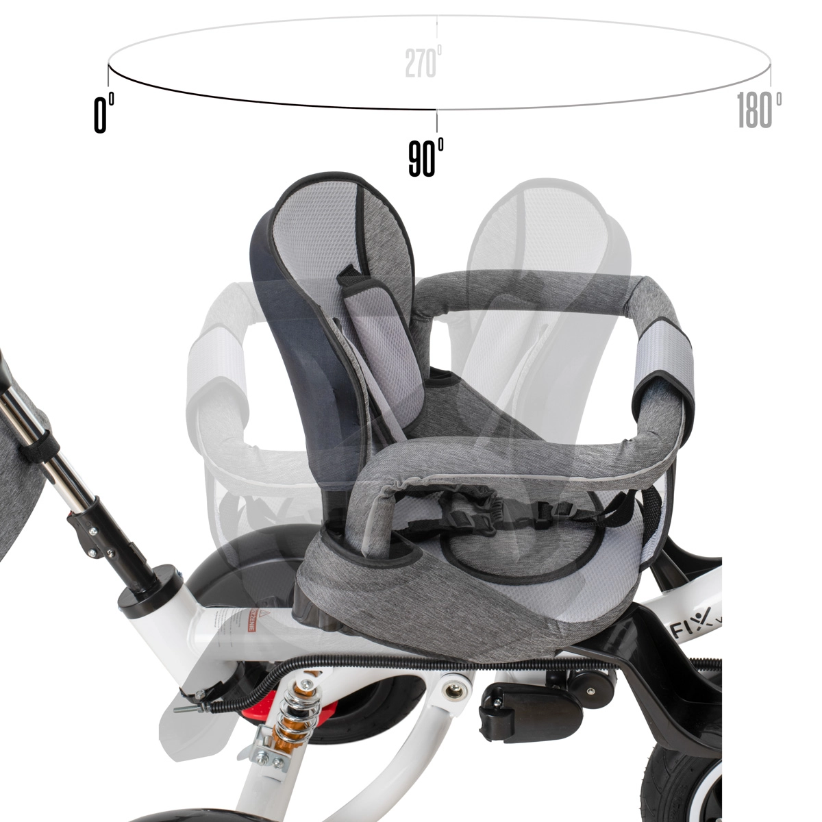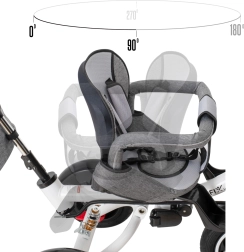 Sjedalo se jednim potezom može okrenuti, tako da dijete može voziti okrenuto prema roditelju ili istraživati svijet u smjeru vožnje. Idealno za manju djecu i znatiželjne vozače.