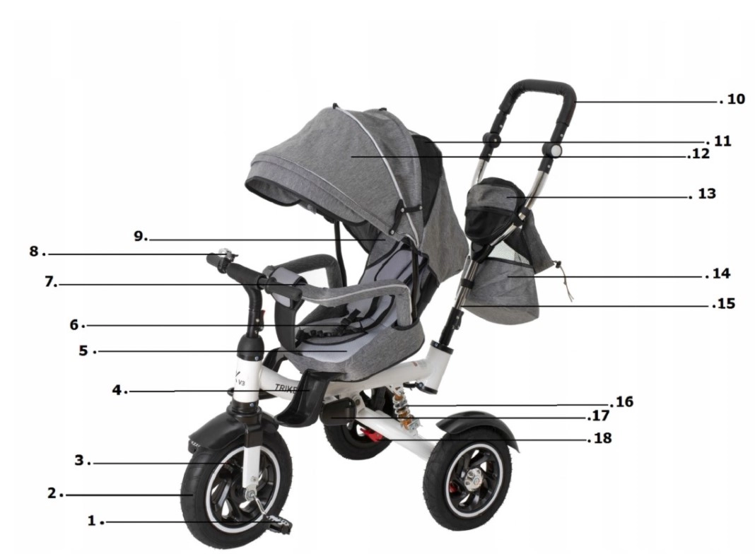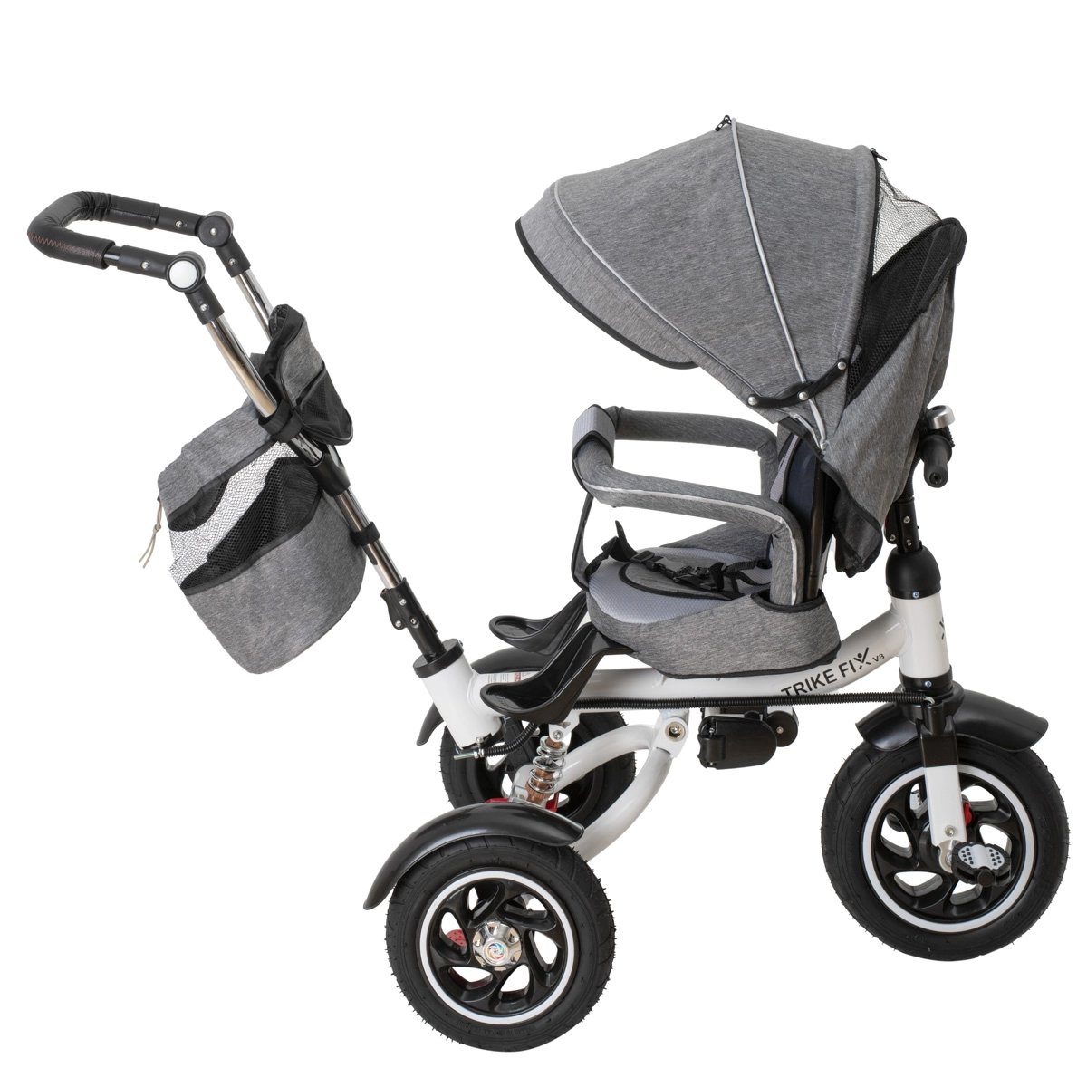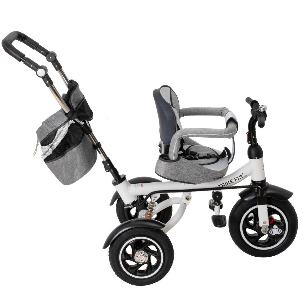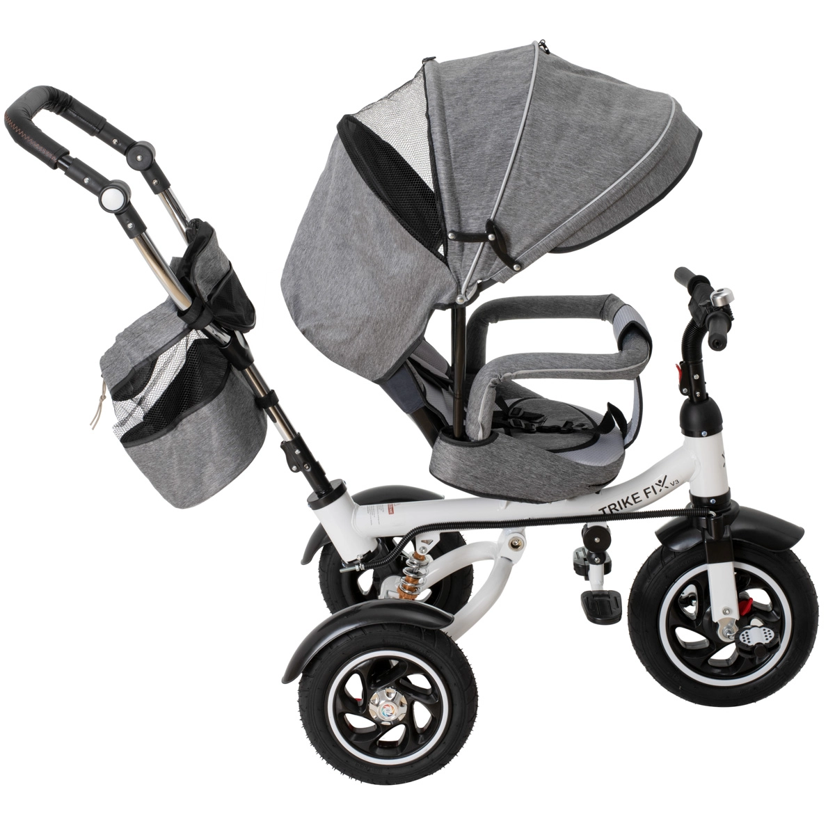 Moderna dječja trokolica 3u1 TRIKE FIX V3 raste s djetetom od 1 do 6 godina i spaja prednosti kolica i bicikla. Zahvaljujući rotirajućem sjedalu od 360°, roditeljskom upravljanju i bez održavanja, bezzračnim kotačima nudi sigurnu i udobnu vožnju na svakoj podlozi. Podesivi naslon, krov s mrežastim prozorčićem i pojas u 2 točke osiguravaju udobnost i sigurnost tijekom šetnji.