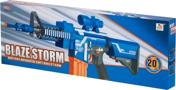 Snažan dječji blaster BLAZE STORM donosi akcijsku zabavu kod kuće i na otvorenom. Automatsko baterijsko pucanje, spremnik za 12 strelica, domet do 10 m i 20 pjenastih strelica u pakiranju. Lagan dizajn, odvojivi ciljnik i ergonomsko držanje potiču koordinacijske i motoričke vještine.
